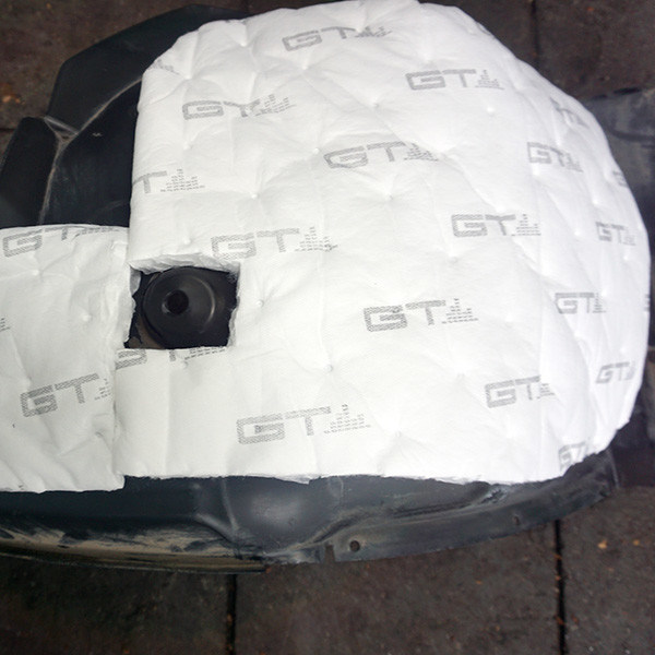 In de kofferbak wordt een soortgelijk geluidsisolatiemateriaal gebruikt om het geluid van in de kofferbak opgeslagen voorwerpen tot een minimum te beperken en om geluiden van de achtervering en de weg te blokkeren.